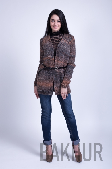 Кардиган виконаний з меланжевої пряжі великої в'язки. Модель вільного крою без застібок з v-подібним вирізом, рукавим регланом та двома накладними кишенями. Кардиган не тільки зігріє свою володарку в холоди, а й дозволить виглядати модно та ефектно. Він чудово доповнить будь-який образ!